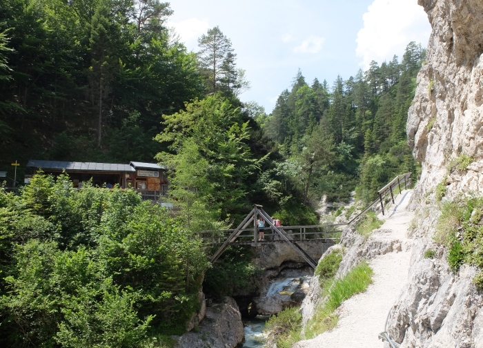 Ehhez a szurdok-bejárathoz autóval kellett mennünk Wienerbruckba. A terv az volt, hogy Éva és én, mint lassú csoport, egyszerűen végigmegyünk a szurdokon, a nyugati végén átmegyünk a szállásunk fölött levő sípályára, és azon - sajnos, nem síléccel - leereszkedünk, és már ott is vagyunk a szálláson, Lackenhofban. A gyors csoport pedig tesz egy nagy kört, megkerüli az Ötschert, visszatér a kiindulási pontra, és hazajön autóval.